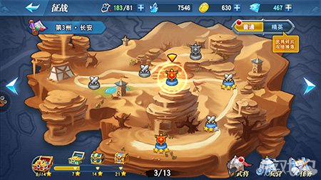 第3州·長安照例有七個副本關(guān)卡,第一關(guān)是亂世奸雄,敵方陣容有徐庶、郭嘉、甄姬和兩個曹軍弓手;第二關(guān)初遇伏兵,敵人有呂玲綺、張梁、祝融和兩個南蠻獵手;第三關(guān)是鹿門試煉,敵軍有黃月英、甄姬、郭嘉和兩個鹿門射手;第四關(guān)是解救曹操,敵方有兩個呂玲綺和三個射雕英雄;第五關(guān)是聯(lián)盟破裂,敵軍有三個精銳弓手和兩個聯(lián)軍猛將;第六關(guān)是此計(jì)甚妙,敵方陣容有西涼軍師、呂玲綺、張梁、徐晃和張遼;第七關(guān)是產(chǎn)滅董賊,敵方陣容有董卓、呂玲綺、徐晃、張遼和射雕英雄。每個關(guān)卡勝利后都會獲得豐厚的獎勵,有初級經(jīng)驗(yàn)丹、阿嬌像、趙飛燕像和掃蕩券。