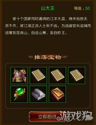 征途手機版游戲中眾多BOSS掉落盤點,玩家們之所以打BOSS在BOSS死后獲取大量的道具獎勵,不過在目前游戲中很多玩家都不知道BOOS的掉落具體有哪些,現在我就來給玩家說說,第一個要說的是山大王BOSS這個大怪物的等級是50級,作為無惡不作的強盜他被征途中十個國家同時通緝,其本身的實力也是不容小覷的,作為無所不做的強盜他的財寶也是非常多的,玩家擊殺之后就可以獲取技能書和50級的綠色裝備以及升級寶石和材料。
